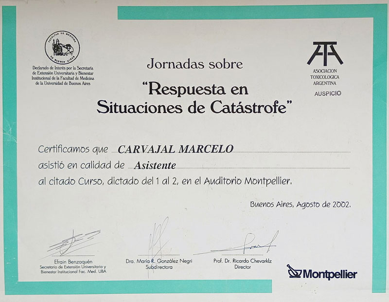 - Disertante en taller de capacitacion en primeros auxilios básicos en fundación «Volver a empezar» sede Mar Del Plata (Buenos Aires).